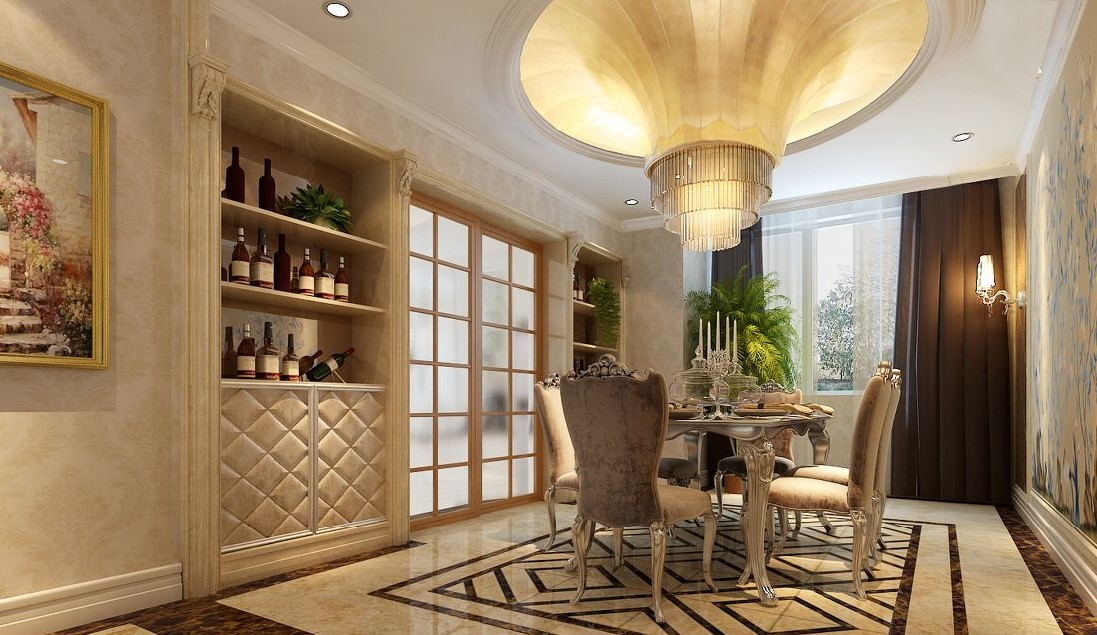 本案在風(fēng)格設(shè)計上主要還是走的歐式風(fēng)格的路線,色調(diào)方面在選擇的時候主要還是走的歐式經(jīng)典的米黃色為主, 客廳的貼磚部分以及頂面的造型相呼應(yīng)!給人一種很強的整體感。在裝飾造型的選擇上面主要還是靠設(shè)計師的拿捏,結(jié)合客戶自身的品味,最終出現(xiàn)今天我們看到的這套案例。